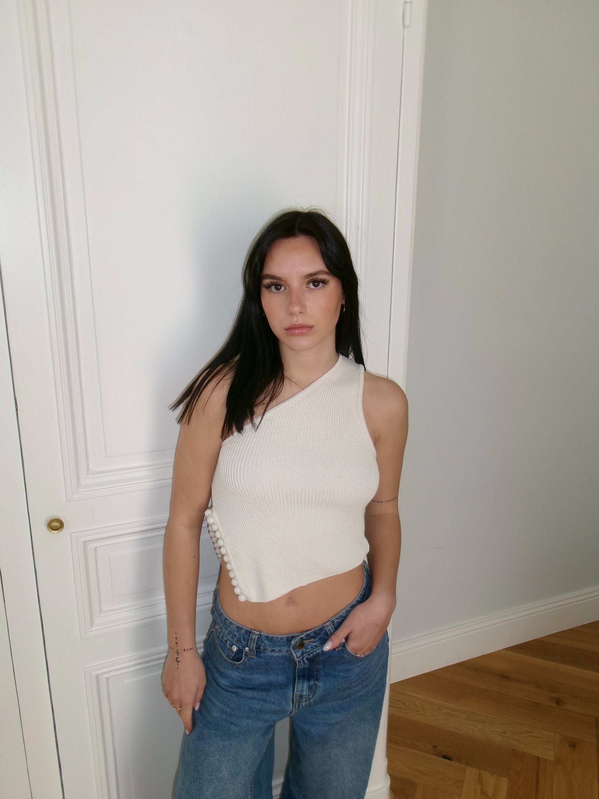 - Top asymétrique écru